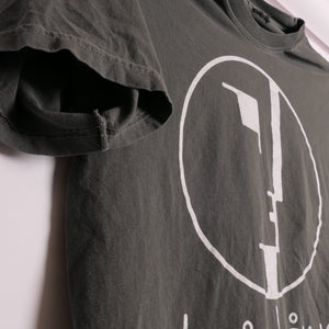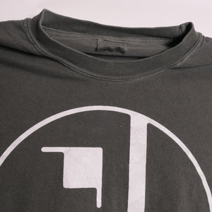 Shirt is super faded- color closer to dark gray. Triple washed and ready for wear. Traditional silk screen on a 100% heavyweight cotton tee. No holes or stains.  In excellent used condition.