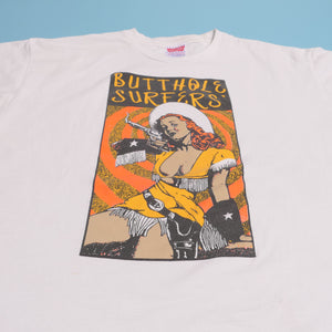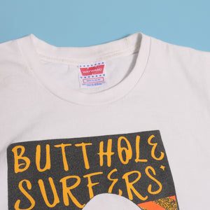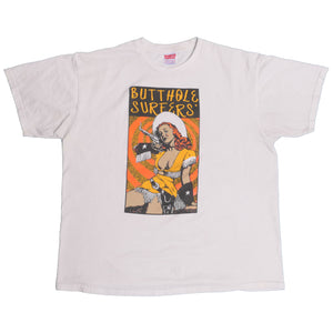 Butthole Surfers are an American rock band formed in San Antonio, Texas, by singer Gibby Haynes and guitarist Paul Leary in 1981. The band has had numerous personnel changes, but its core lineup of Haynes, Leary, and drummer King Coffey has been consistent since 1983. Teresa Nervosa served as second drummer from 1983 to 1985, 1986 to 1989, and 2009. The band has also employed a variety of bass players, most notably Jeff Pinkus. Emerging from the 1980s hardcore punk scene, Butthole Surfers quickly became known for their chaotic live shows, black comedy, and a sound that incorporated elements of psychedelia, noise rock, and punk as well as their use of sound manipulation and tape editing.