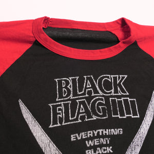 Triple washed and ready for wear. Traditional silk screen on a 100% cotton 3/4 sleeve raglan tee. No holes or rips. In excellent used condition.