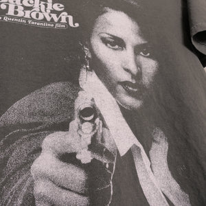 Jackie Brown is a 1997 American crime film written and directed by Quentin Tarantino, based on the 1992 novel Rum Punch by Elmore Leonard. It stars Pam Grier as Jackie Brown, a flight attendant who smuggles money between the United States and Mexico. Samuel L. Jackson, Robert Forster, Bridget Fonda, Michael Keaton and Robert De Niro appear in supporting roles. Jackie Brown pays homage to 1970s blaxploitation films, particularly Coffy and Foxy Brown, both of which also starred Grier. It is the only feature-length film directed by Tarantino that was based on another work.