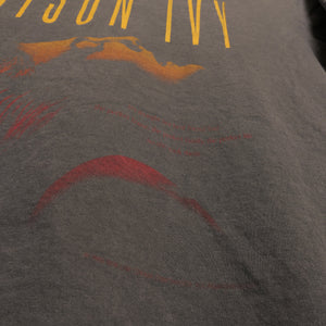 Triple washed and ready for wear. Traditional silk screen on a 100% heavyweight cotton tee. No holes or stains. In excellent used condition. Shirt is super faded- color closer to dark gray.