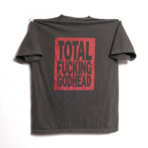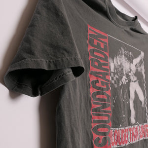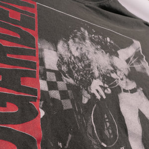 Triple washed and ready for wear. Traditional silk screen on a 100% heavyweight cotton tee. No holes or stains. In excellent used condition. Ultra faded- color closer to dark gray. Check photos.