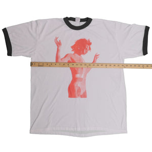 Triple washed and ready for wear. Traditional silk screen on a 50/50 poly cotton tee. Boxy fit. No holes or stains. In excellent used condition. Made in USA.