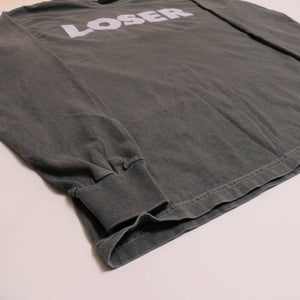 Shirt is super faded, color closer to dark gray. Triple washed and ready for wear. Traditional silk screen on a heavyweight cotton tee. No holes or stains.