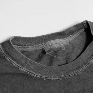Shirt is super faded, color closer to dark grey. Triple washed and ready for wear. Traditional silk screen on a 100% heavyweight cotton long sleeve tee. No holes or stains.