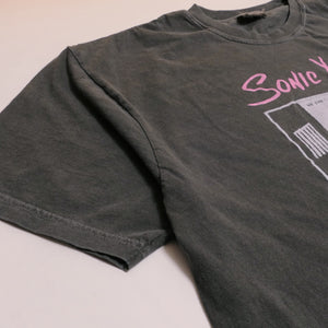 Triple washed and ready for wear. Traditional silk screen on a 100% heavyweight cotton tee. No holes or stains. In excellent used condition. Shirt is super faded- color closer to dark gray.