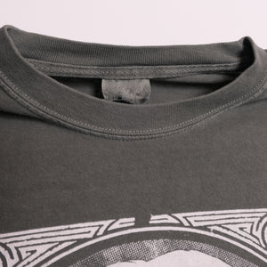 Shirt is super faded, color closer to dark gray. Triple washed and ready for wear. Traditional silk screen on a 100% heavyweight cotton tee. No holes or stains. In excellent used condition.