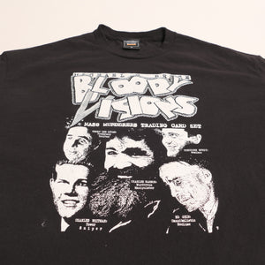 Bloody Visions series 1 trading card promo t-shirt art. The 48 trading cards featured serial killers, mass murderers, and true crime. By Michael H. Price. Shel-Tone Pubs.