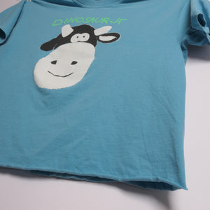 Triple washed and ready for wear. Traditional silk screen on a 100% heavyweight cotton tee. No holes or stains. Bottom is cropped. Measures 23" wide x 25" tall approx.
