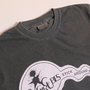 Triple washed and ready for wear. Traditional silk screen on a 100% heavyweight cotton tee. No holes or rips. In excellent used condition. Shirt is super faded- color closer to dark gray.