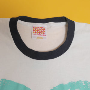 Triple washed and ready for wear. Traditional silk screen on a 100% cotton ringer tee. No holes or rips. In excellent used condition.